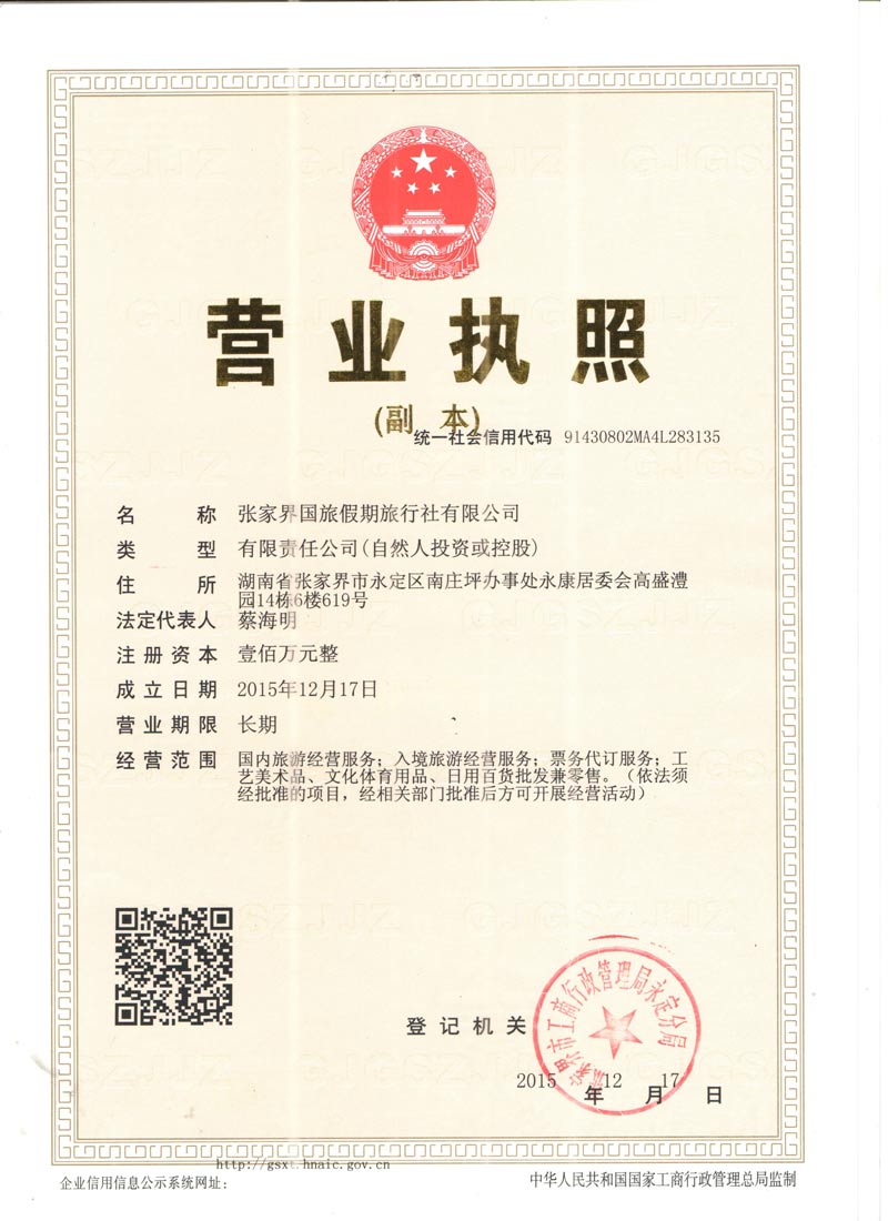 全國優(yōu)秀旅行社中國馳名商標國家級青年文明號單位張家界國旅假期旅行社官方網站<許可證號:L-HUN-08087>